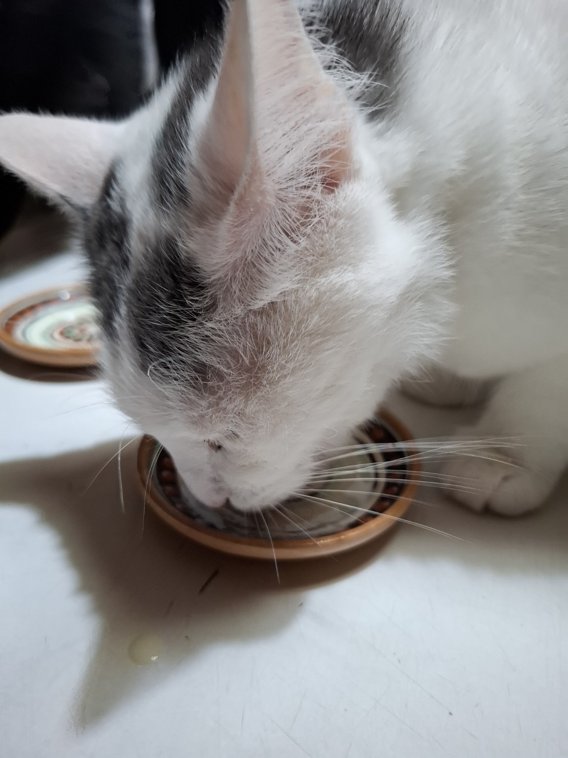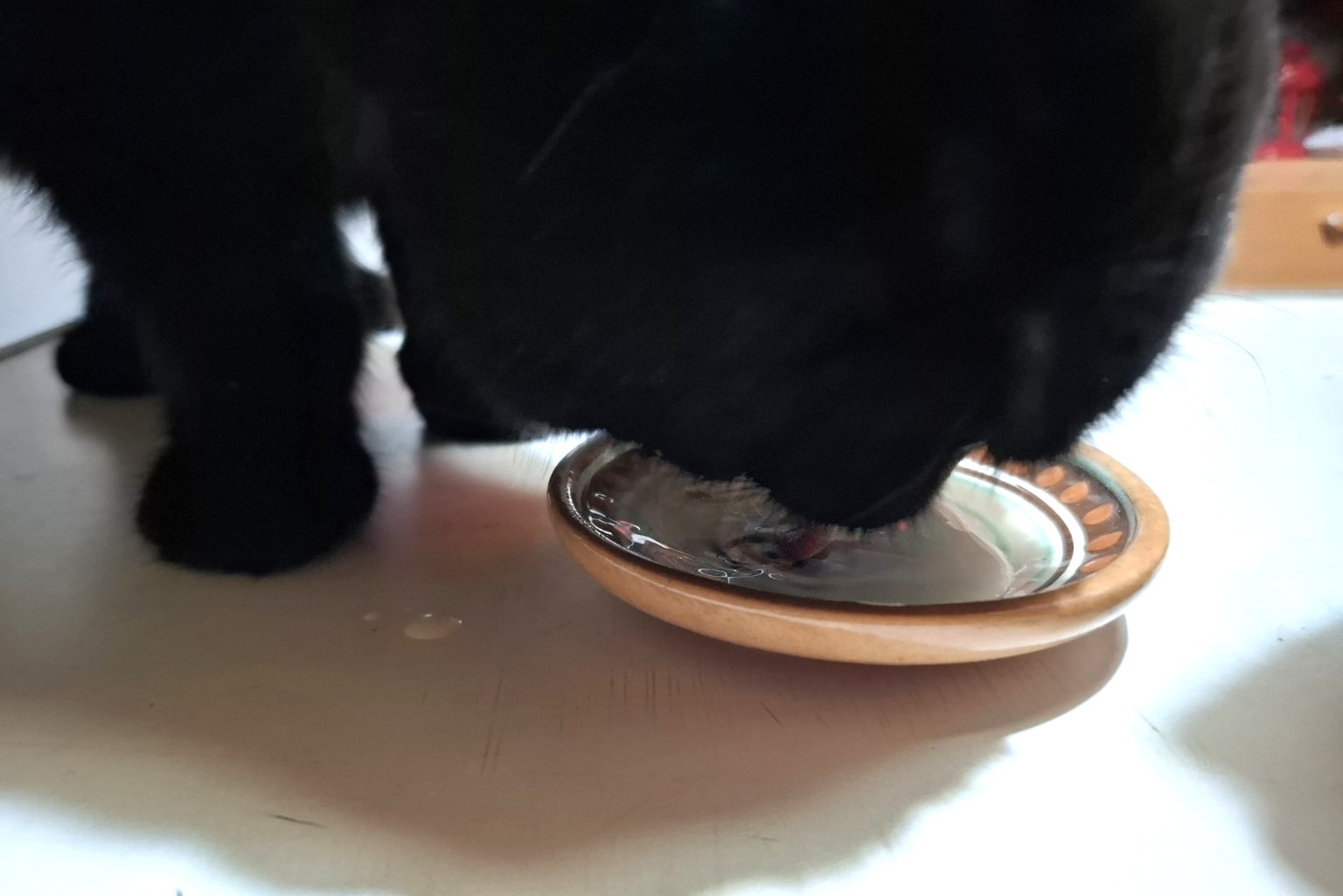 Лизнул. Скривился. Обошёл блюдце. Понюхал снова.